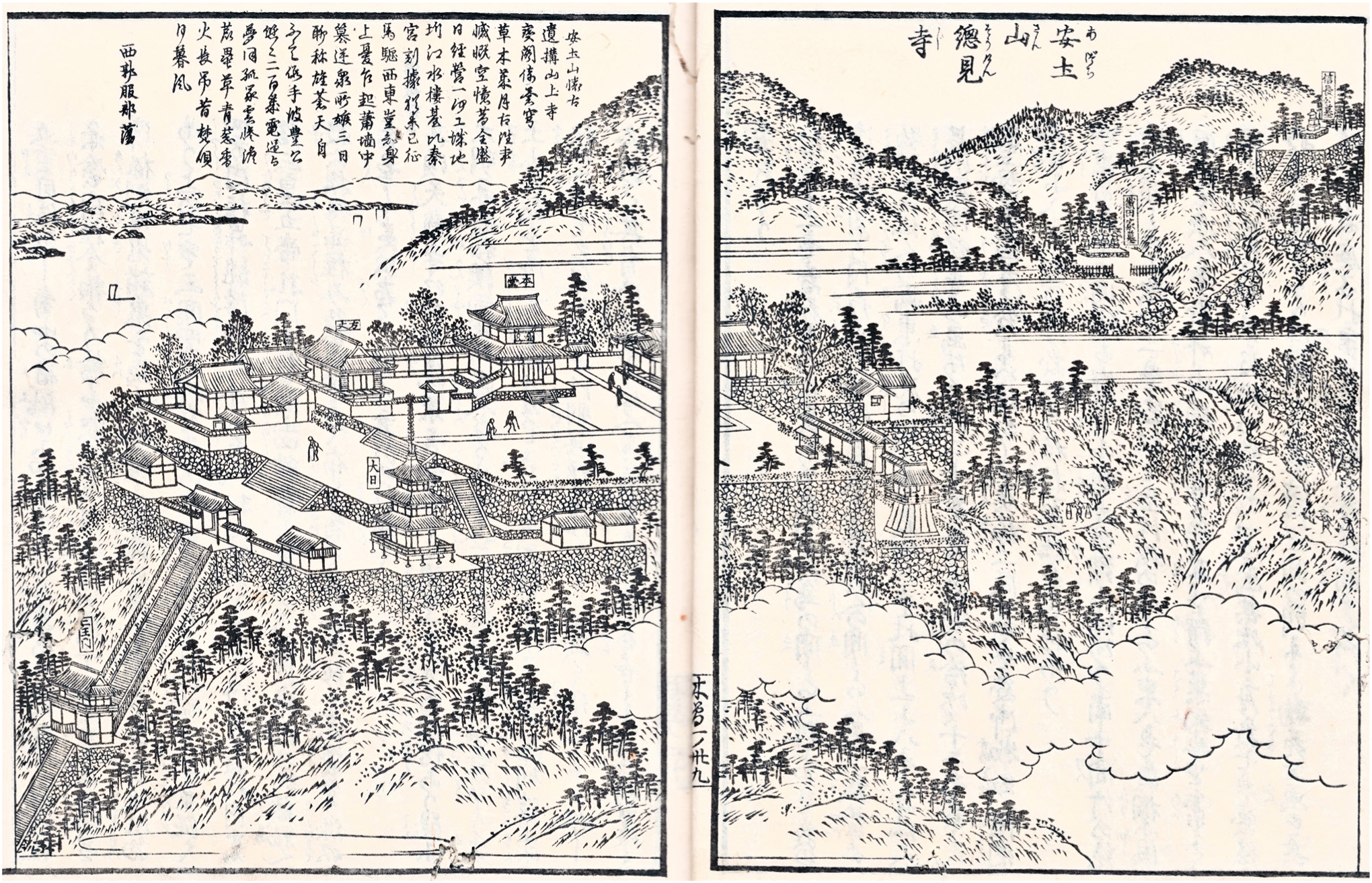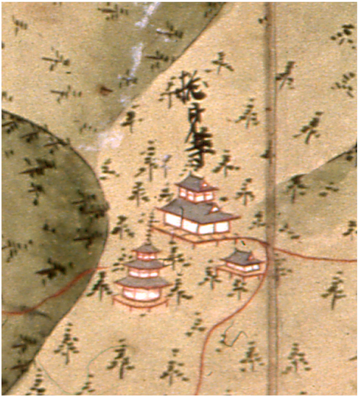 - Okagaki and Asakawa propose one renovation and that the 1791 Sōkenji keidai ezu 摠見寺境内絵図 (Illustration of Sōkenji’s grounds) represents a retrospective description of the building as it was during Nobunaga’s day. Okagaki and Asakawa, “Hotoke o koeru Nobunaga,” 48. Okagaki and Asakawa overlook a 1695 depiction (see fig. 21). ⮭