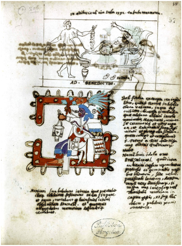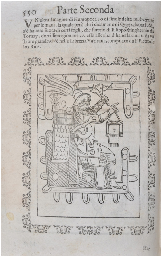 I [Pignoria] came across another image of Homopoca, or of a similar deity which others say is of Quetzalcoatl. And it was taken from certain papers which were of Winghe of Tournai [sic], learned youth, who claimed to have taken it from a large book, which is in the Vatican Library, compiled by F. Pietro de los Ríos.53