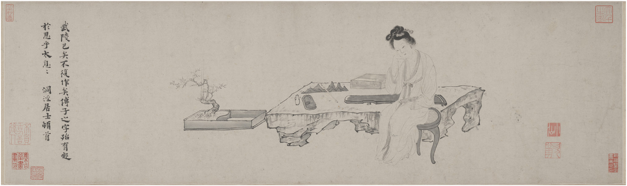 在此背景下,任何美人图仿制品都难免与风月场所产生关联。换言之,妓院的现实情景可能为众多采用理想化(或标准化)美人图技法绘制的佳人图卷提供了某种具象化的注脚。在一个渴求理想美人却又对妓院现实感到幻灭的世界中,这些美人图恰能营造虚幻的慰藉,满足观者遐想。