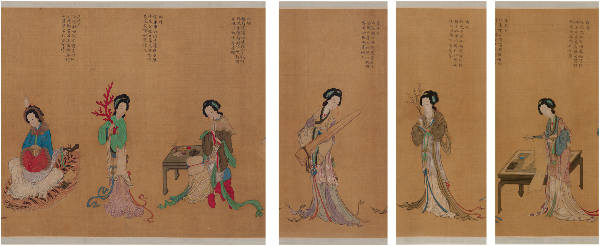 在我所分析的晚明戏剧中,作为道具使用的美人图承载着跨越艺术市场与剧场、现实与幻境的多重能量。这种在虚实之间游走的普世化静态美人符号,正是我所定义的青楼女子的"角色肖像"。当画中美人被赋予生命,化身为能歌善舞的名妓时,其形象便与名妓本体重叠交融。对于晚明观众而言,这类画中美人始终处于悬置状态,静待临摹者或倾慕者的二次激活。将立轴美人图组合为屏风的传统虽可追溯至中古时期,但在晚明新编艳品戏剧的语境中,此类物件必然对时人更具情色意味——因为画中人的复活不仅存在于"心灵之眼",更投射于我们可称之为"肉体之眼"的感官体验。