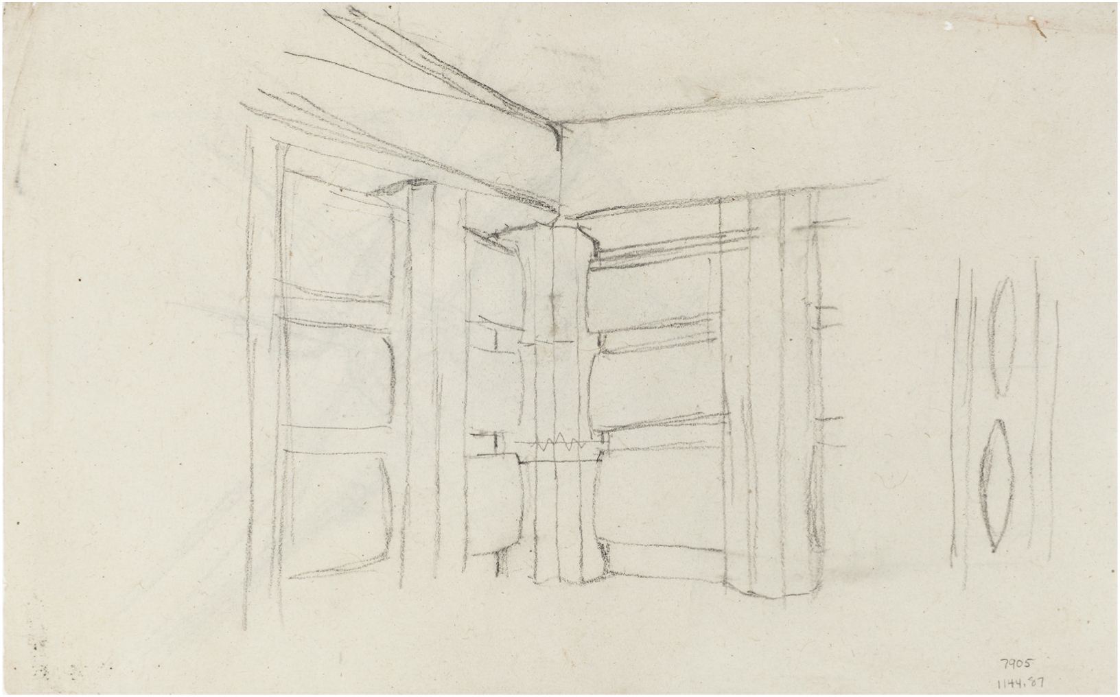 Judging from the numerous photographs Noguchi took of the Sanchi railing alone, as well as his detailed sketches of its structure, he seemed to recognize that ancient sculptors were emulating in stone earlier traditions of clay carving and wood joinery. Informally trained in woodworking as a child, he had been sensitized from a young age to the close relationship between materials and structure. He recalled how his mother, Léonie Gilmour, encouraged him to observe Japanese carpenters at work: