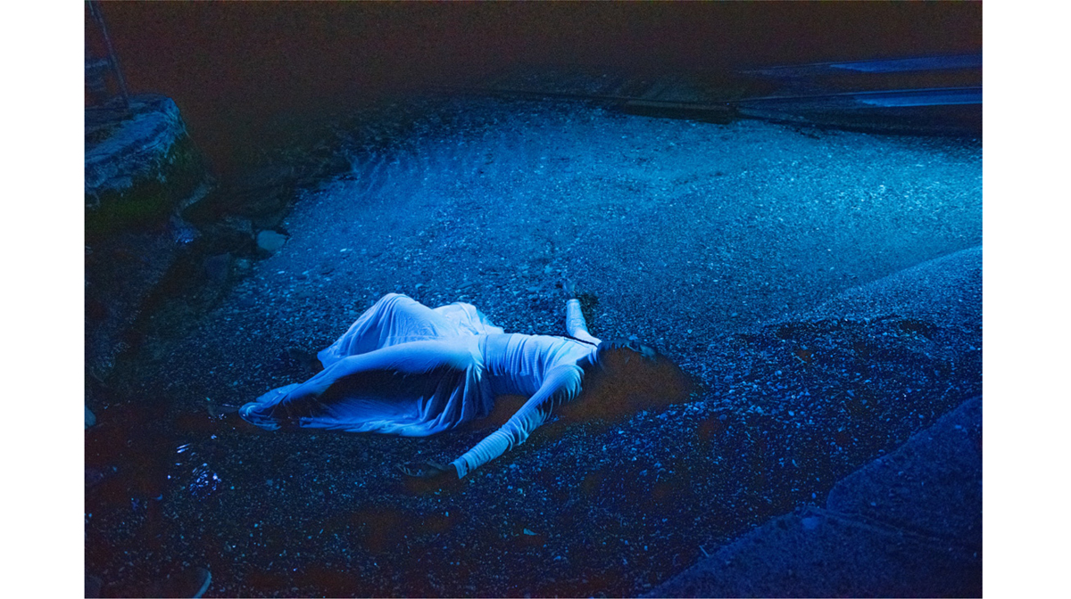 For two months, I danced relentlessly to Simbi Dlo, moved by an inner calling. A color, blue, of water, sky, and the infinite, emerged strongly in my visions. The hypnotic rhythm, the deep percussion, and the repetition of words like a mantra, Simbi Dlo mwen ye, DangbeAllah Wèdo mwen ye « I am Simbi Dlo, I am DangbeAllah Wèdo », resonated within me in an inexplicable way. I felt compelled to give form to this sensation, which led to a video project in which I embodied the central figure, inspired by an unexpected proposition from my brother.