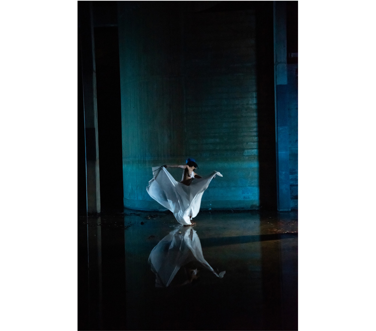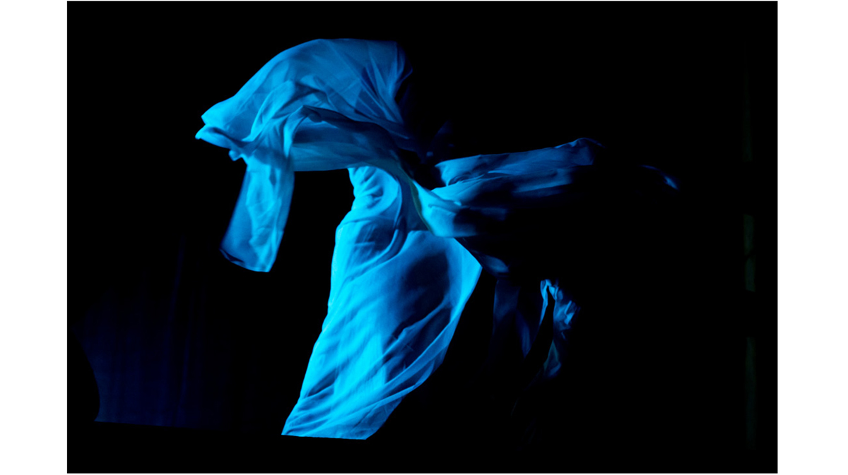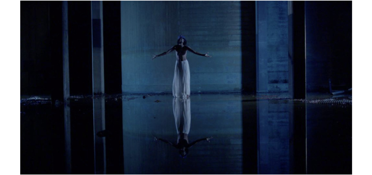Pendant deux mois, j’ai dansé inlassablement sur Simbi Dlo, portée par un appel intérieur. Une couleur, le bleu — de l’eau, du ciel, de l’infini, s’est imposée dans mes visions. Le rythme lancinant, les percussions profondes, la répétition des mots comme un mantra: Simbi Dlo mwen ye, DangbeAllah Wèdo* mwen ye (Je suis Simbi Dlo, Je suis DangbeAllah Wèdo), résonnaient en moi d’une manière inexplicable. J’ai senti la nécessité de matérialiser cette sensation, ce qui a donné naissance à un projet vidéo dans lequel je me suis incarnée comme figure centrale, en réponse à une proposition inattendue de mon frère.