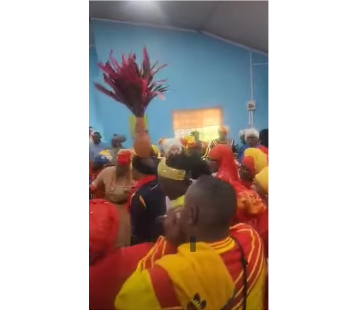 The embodied practice of dance and movement, which forms an integral part of worship and the performative elements of rejoicing among the Spiritual Baptist and other African-derived religions in the Caribbean and the diaspora, is expressed in various ways. Spiritual Baptist services can be solemn occasions with calm reverence and coolness as seen when someone is on the field preaching the word or during segments of funeral services where there is a feeling of grief and sadness. There can also be a feeling of relaxation and focused attention such as during healing and deliverance ministry or when certain rituals are being performed. The way the text or word is delivered, and the rhythmic pace of the hymns and choruses being sung, are factors to consider. It all depends on how deeply these performances resonate with the spiritual leaders, devotees, and members present in the congregation at any given time. Sometimes the songs and music are a slow rendition where the dance movements are those of waltz and cool steps. On these occasions, members glide and dance around the space with calmness, grace, and delicate poise. At other times, Spiritual Baptist services can be dynamic, hot, and fiery. Sometimes the behavioral patterns of individuals in the charged atmosphere of the environment can be characterized as “bashment”, “comess”, drama, and pure bacchanal (intense emotions and ecstatic celebrations). Within a spiritual setting, these terms also carry connotations of an intersection of culture and spirituality where aspects of revelation, manifestation, and heightened sacred expressions can emerge. The atmosphere can even become chaotic and wild when bodies move in motion with sounds, dance, and spirit possession. Thus, the ritual practices portrayed on the spiritual field and stages, along with what transpires behind the curtains on the backstage, are part of the plot that occurs in the sacred theater. It all depends on the operation of the leader of the service, participants, and the issues surrounding the type of service being held. In her discourse, Maarit Forde states, “similarly, in Tobagonian Spiritual Baptist healing rituals, the ‘hotness’ of the communal dancing and music-making is crucial, and ritual specialists sometimes scold their congregations for not putting sufficient effort into creating a favourable setting for spirits” (20). Therefore, to enable an enjoyable and smooth running of the service, everyone is advised and encouraged to get up and play their part to ensure a successful outcome. During some services, the sacred spaces can become hyped like a spiritual dance party, especially at a pointing on, and shouting of pilgrims as is done during and after a mourning ritual, or when a thanksgiving celebration is being conducted. In her honors thesis, Praise Him with the Dance: Incarnation Creation and the Sacred Art of Movement, Mariah Sky Franklyn noted, “dancing, rejoicing and feasting are related in that they are all involved in the event of celebration” (41). It is at these types of ceremonies that festive vibrancy exists and where the spirit can manifest.