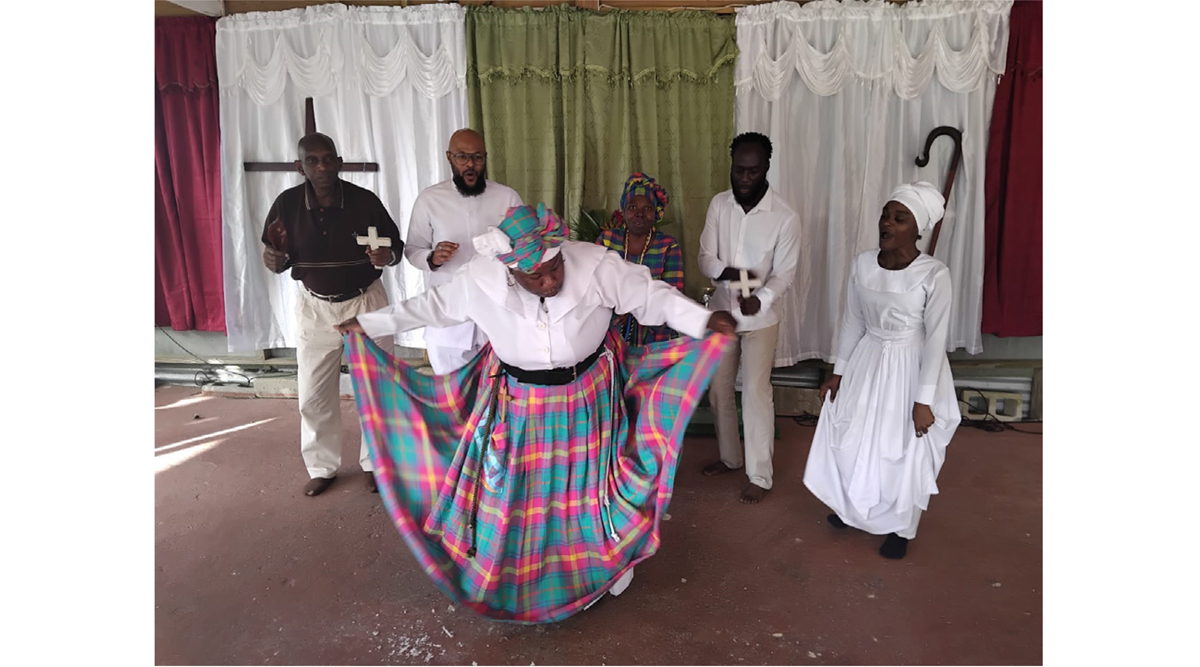 Historically, it has been widely documented that many of the dance movements seen among Black Atlantic Religions are part of the retention and continuous sequence of the cultural and ritual practices of Africans who were forcefully transported to the region of the Caribbean and its diaspora. According to Joseph Murphy in Working the Spirit: Ceremonies of the African Diaspora “an African diaspora connotes both one and several communities, separated by language and culture, but united in a similar past and future” (177). Hence, even though Africans were scattered across the borders of the world because of migration, the creative expression of dance and other Afro-spiritual practices has become a unifying force among diasporic communities and Caribbean people wherever they reside. As Ennis B. Edmonds and Michelle A. Gonzalez wrote in Caribbean Religious History an Introduction, “one of the ways of characterizing contemporary Caribbean culture(s) is to say that, while Europe rules in the official social institutions of politics, economic, education, and law, other ethnic groups, particularly Africans, tend to rule in folk and popular culture, including religion, music, dance, and increasingly, the visual and performing arts” (7). The different media of creative expressions, such as music, dance, and sacred arts, are often relegated to African culture and are distinctly used to tell stories, speak of situations, and portray issues relating to past and present experiences. The embodied practice of sacred expressions conveys various meanings and is based on the environment and the circumstances that exist, whether real or imagined. The author Keith McNeal affirmed that “the enduring significance of drumming and dancing in Afro-Creole religious and aesthetic forms, stems from reiterating shifts in the meaning of those practices over time in keeping with context of use and experience” (61). Even living through the brutality of hard labor and the traumatic experiences of slavery, semblances of these performative artistic expressions remain in the memories and the cultural fabric of Barbados, St. Vincent, Trinidad, and other Caribbean islands in various forms. Some Afro-Caribbean people are resilient and work hard to maintain the legacy and survival of oral histories, creative art forms, and spiritual ritual practices, as reflected in the various expressions and doctrines of members of the Spiritual Baptist.