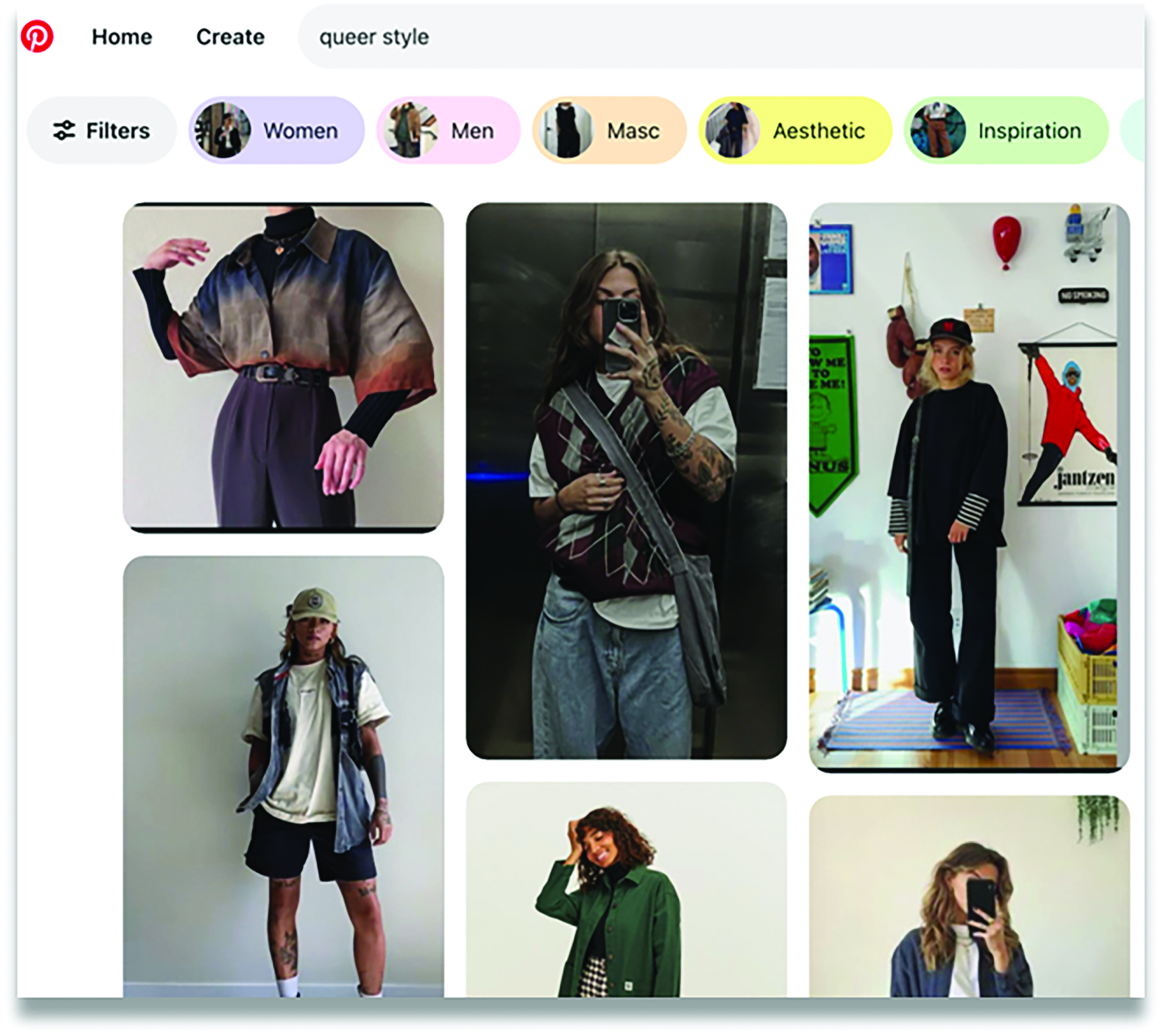 Queer fashion inspiration on Pinterest, where digital aesthetics shape self-expression and identity beyond LGBTQ+ communities.