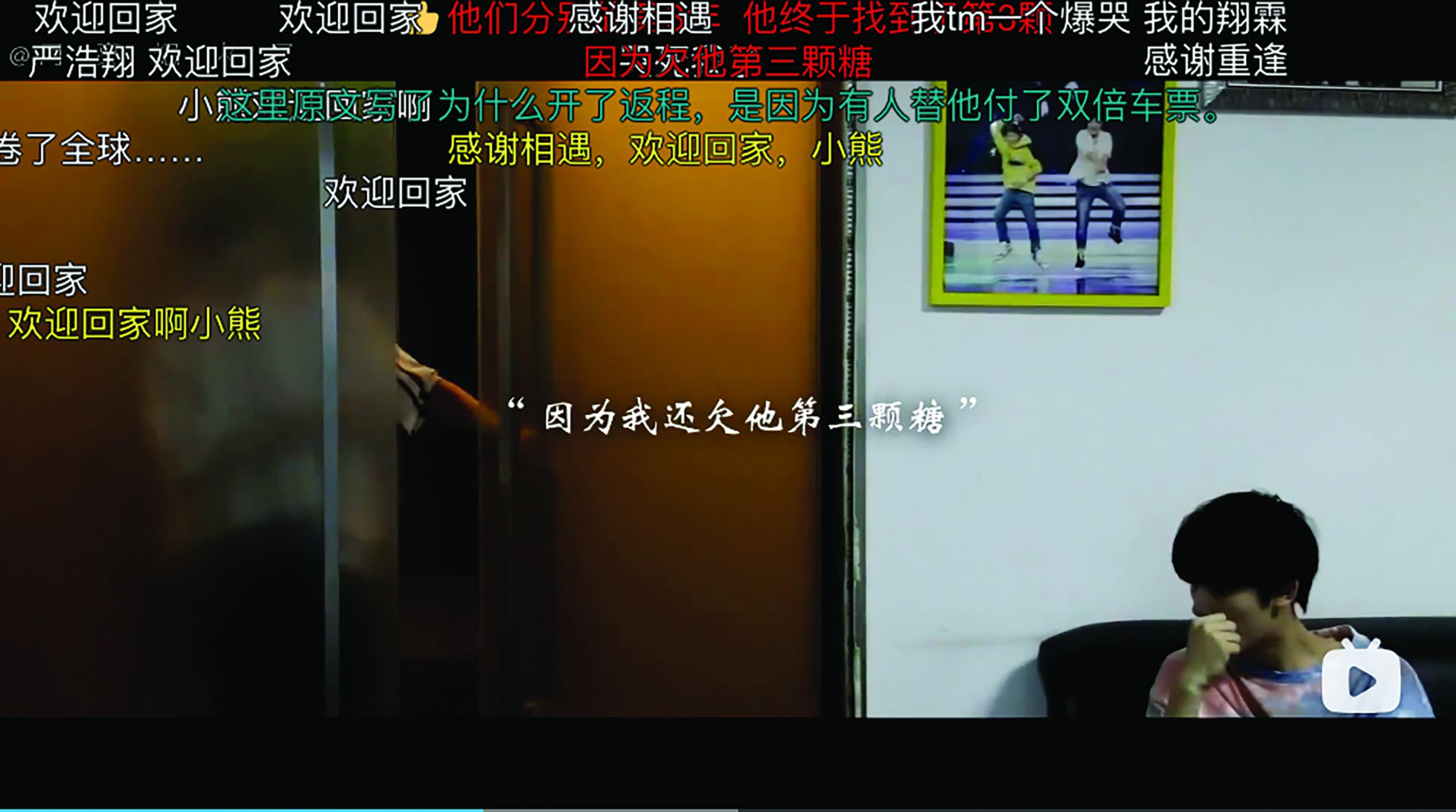 Viewer engagement reveals the immersive reading through Bilibili’s danmu feature. Danmu (bullet comment) is the user-generated text flowing across the screen to promote a participatory culture of consumption.37 In the reunion scene of the Light Rail video, viewers simultaneously express their affection in the reunion (“Grateful for the return”) and provide textual information from the fan fiction (“Here [when he] tells about the reason for the returning trip in the original text, [it] is because someone pays for Yan’s ticket”). These affective danmu indicate diverse reading perspectives of the readers, whether they choose to prioritize the reality, the textual, or the audio-visual mediated truth. Once again, the fiction/reality binary dissolves as the real speech now becomes a segment of the fan fiction and the fantasized account participates in the real footage’s mediation of the event. This reciprocal relationship constitutes mixed realism’s authentic effect.