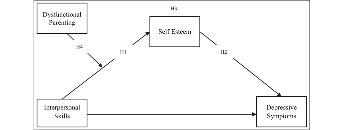 Pakistan is a traditional collectivistic culture in which societal and familial conventions and values, rather than personal ideals and interests, take precedence. In these cultures, social cohesion and family, particularly parents, play a critical role in the psychosocial development of children and adolescents. Therefore, considering the cultural norms and values, the current study aimed to find the association between interpersonal skills, negative parenting, self-esteem, and depression in adolescents. Furthermore, this study also aimed to find out the mediating moderating role of self-esteem and dysfunctional parenting in the association of interpersonal skills and depressive symptomatology (see Figure 1).