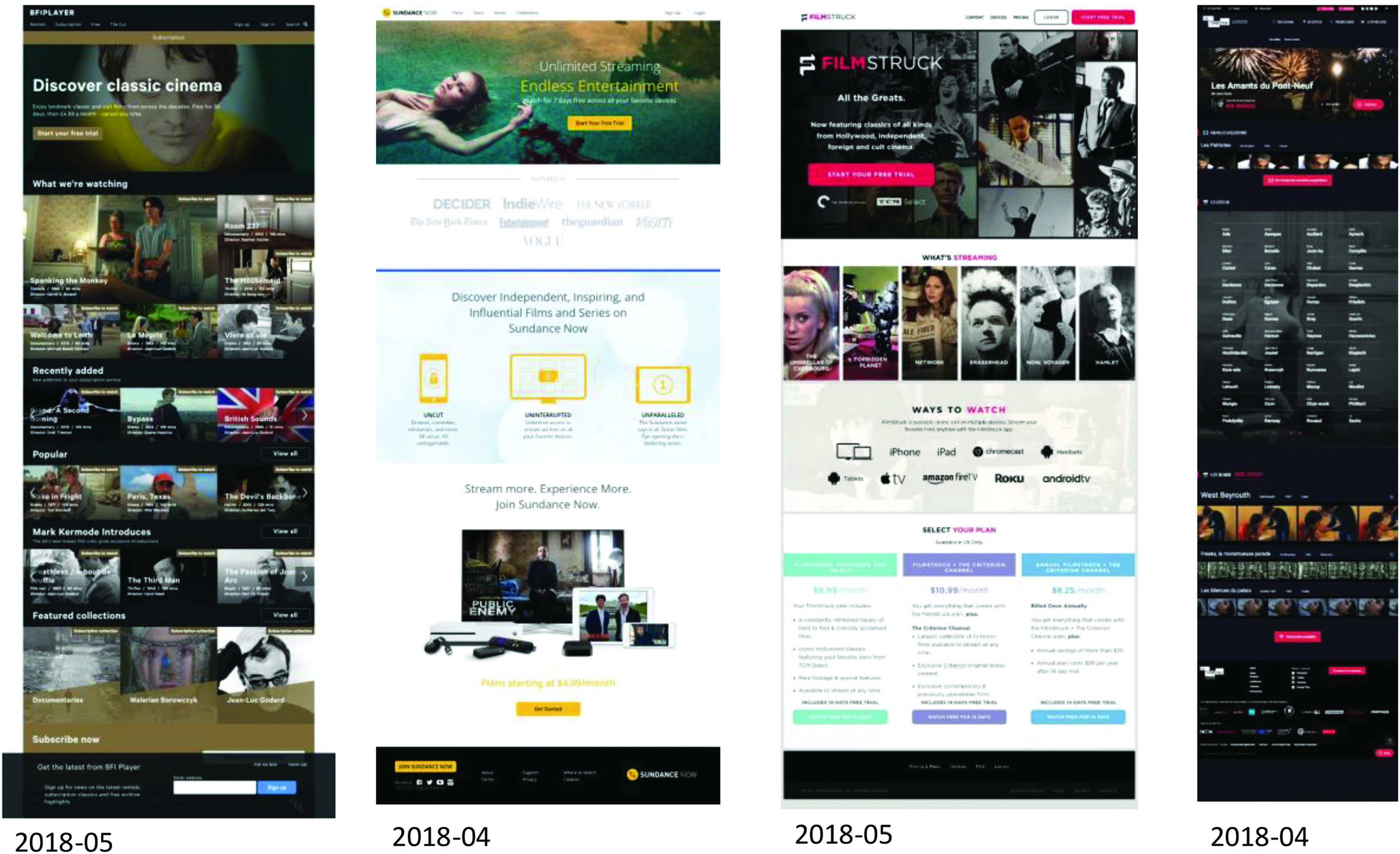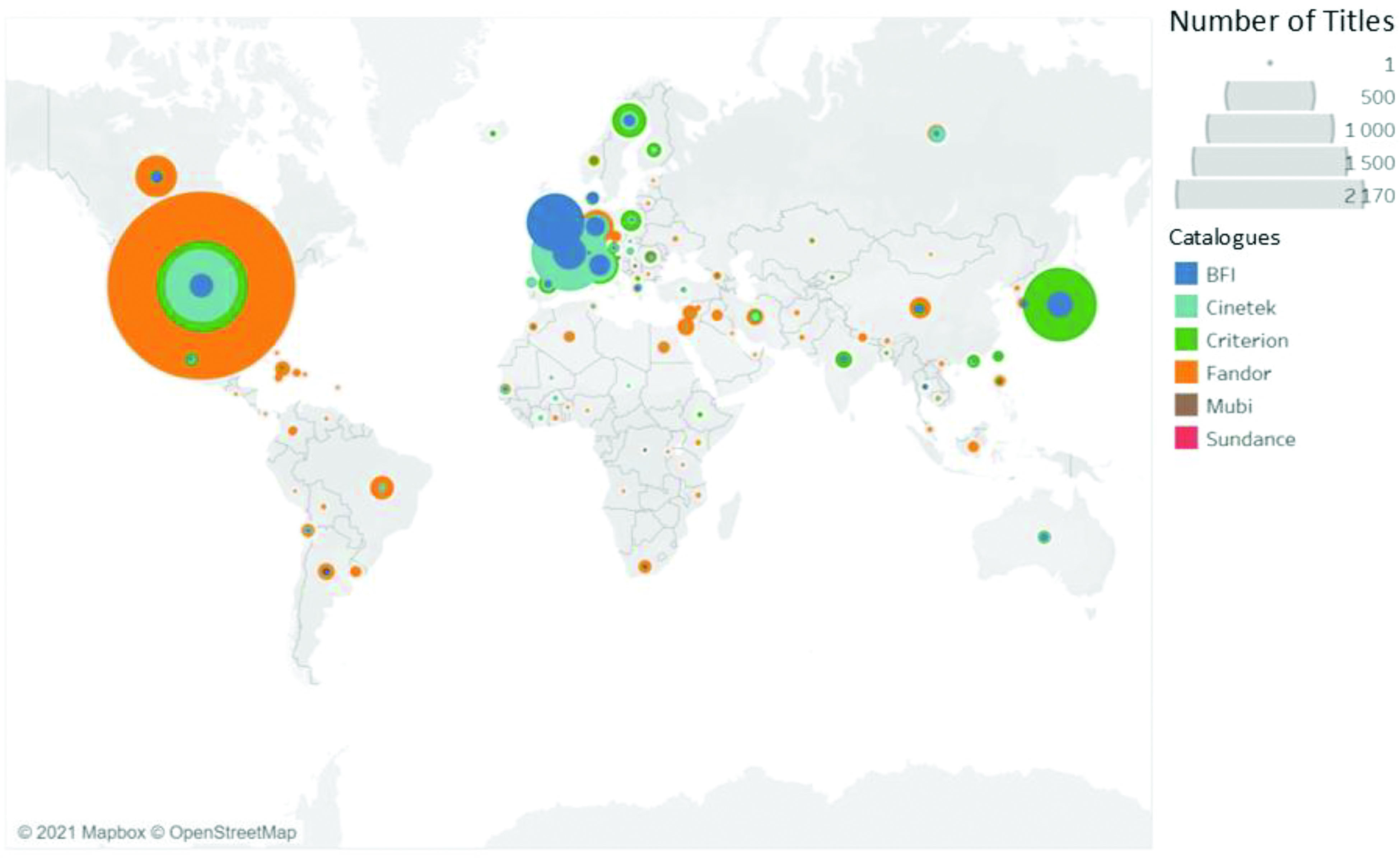 - For reasons of feasibility and due to certain technical limitations, only the following catalogs were the subject of such data collection: BFI Player, Fandor, LaCinetek, Mubi, Sundance Now, and The Criterion Channel. ⮭