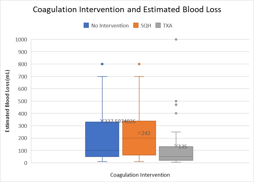 One hundred eighty-nine patients were included; there were eighty-six females and an average age of 58.67 +/- 13.26 years. 115 patients received no intervention, 22 patients received subcutaneous heparin (SQH), and 35 patients received tranexamic acid (TXA). There were no statistically significant differences between coagulation intervention and complication rate, change in post-operative motor function (p = 0.1468), or postoperative VAS pain change (p = 0.216, F-value = 1.544). No differences were found between length of hospital stay and coagulation intervention after correcting for staged procedures (p = 0.422, t-value = -0.804). Although not statistically significant (p = 0.071, F-value = 3.306), there seemed to be a decreased estimated blood loss with no intervention, SQH, and TXA, in decreasing order (after stratifying by approach).