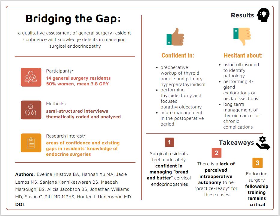 Abraham PJ, Fazendin J, Xie R, Chen H, Lindeman B. Resident self-assessment of common endocrine procedures. Am J Surg. 2022;223(6):1094-1099. doi:10.1016/j.amjsurg.2021.10.025
