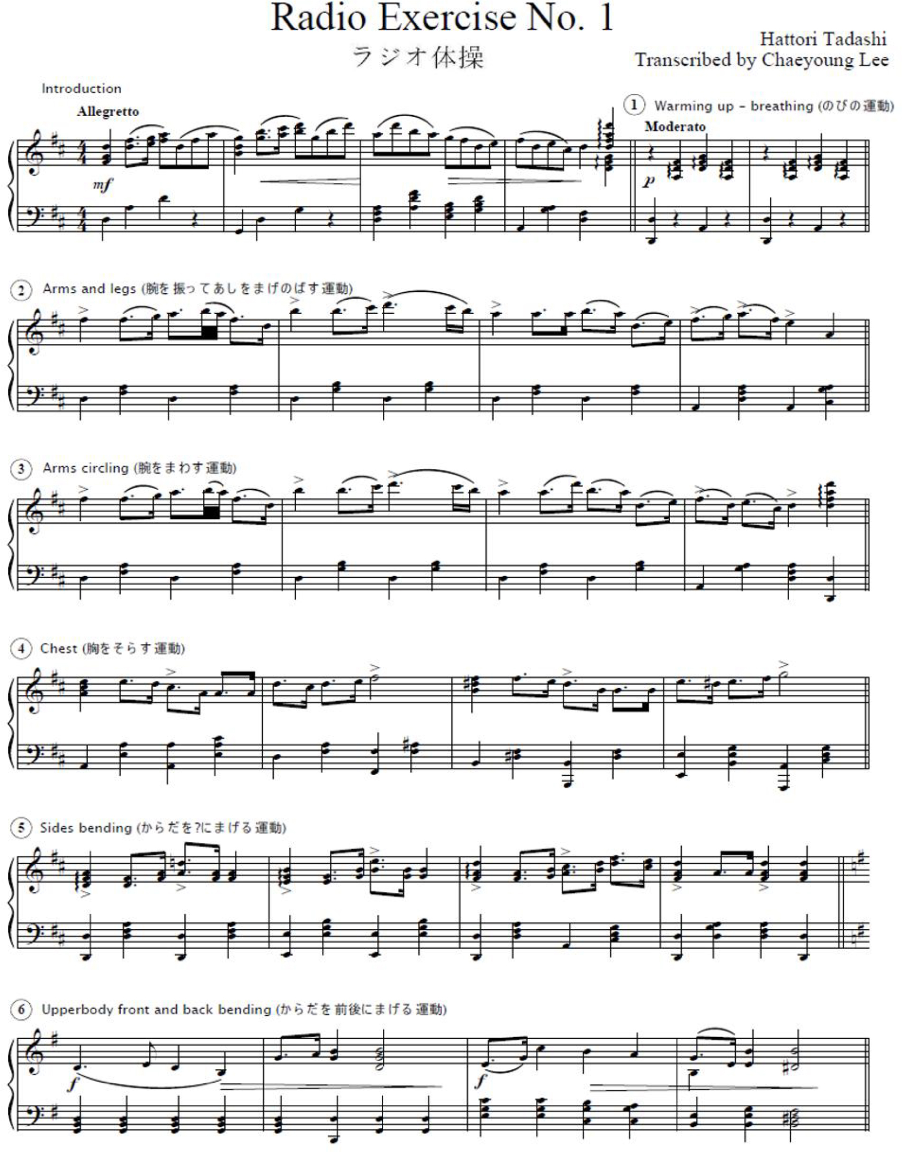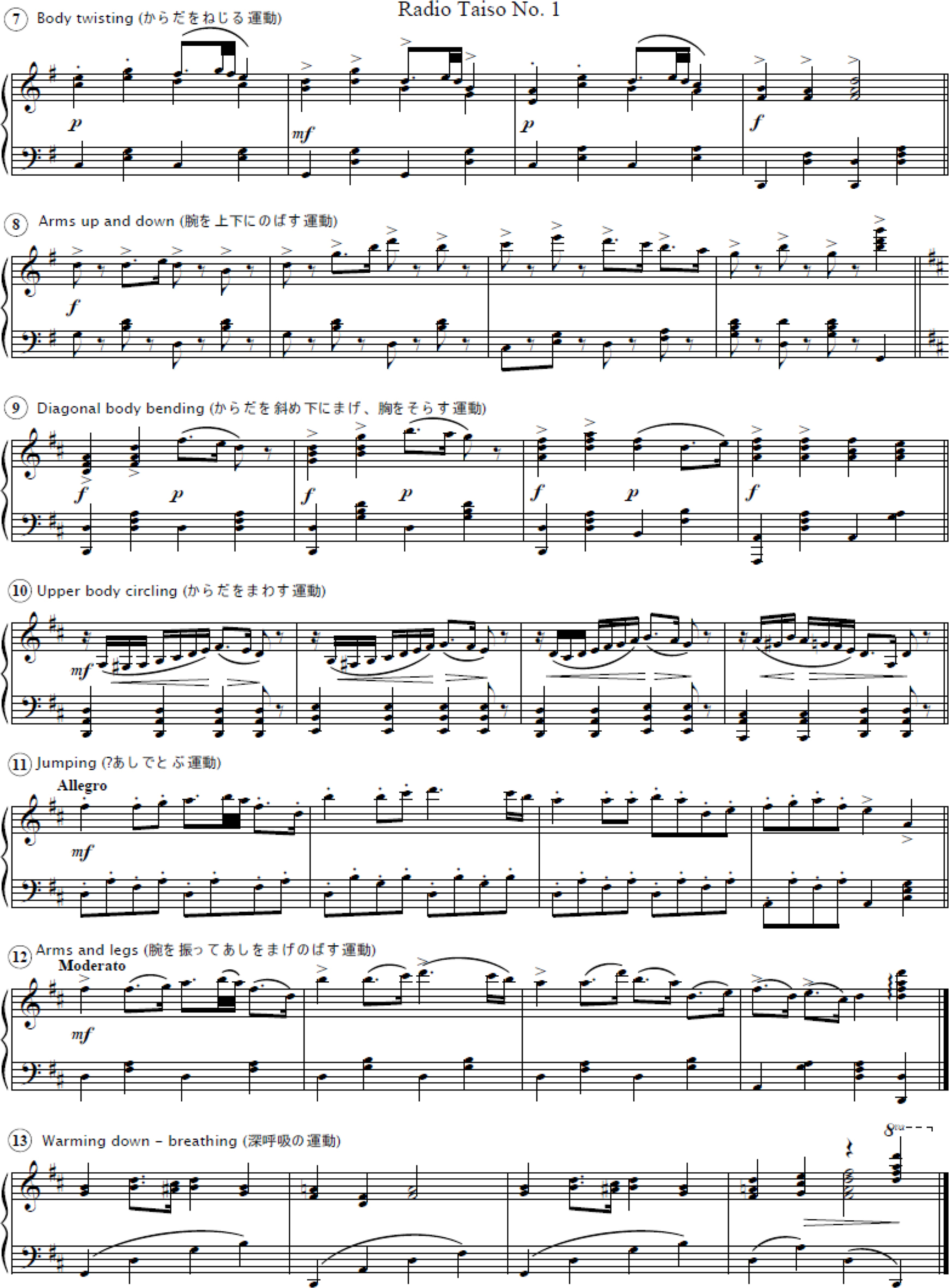 Japanese Third Radio Exercise No. 1, composed by Hattori Tadashi, transcribed by the author.
