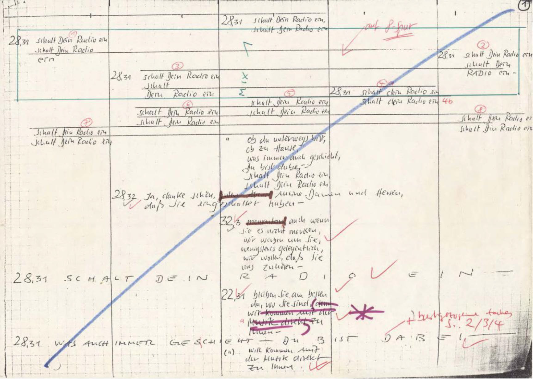 Hörfunk (Radiostücke I–V): Recording of the first broadcast (unpublished), provided by WDR.