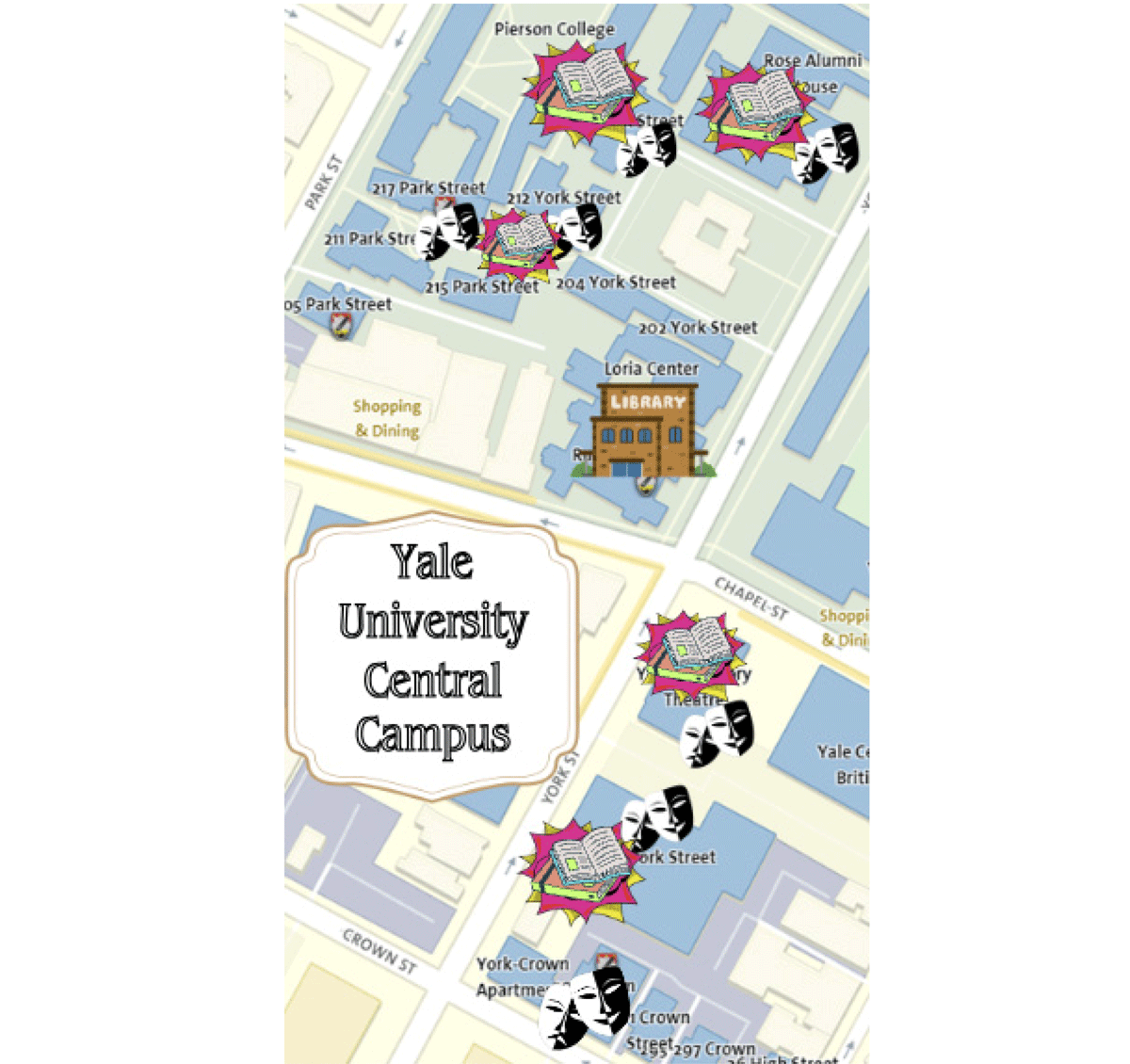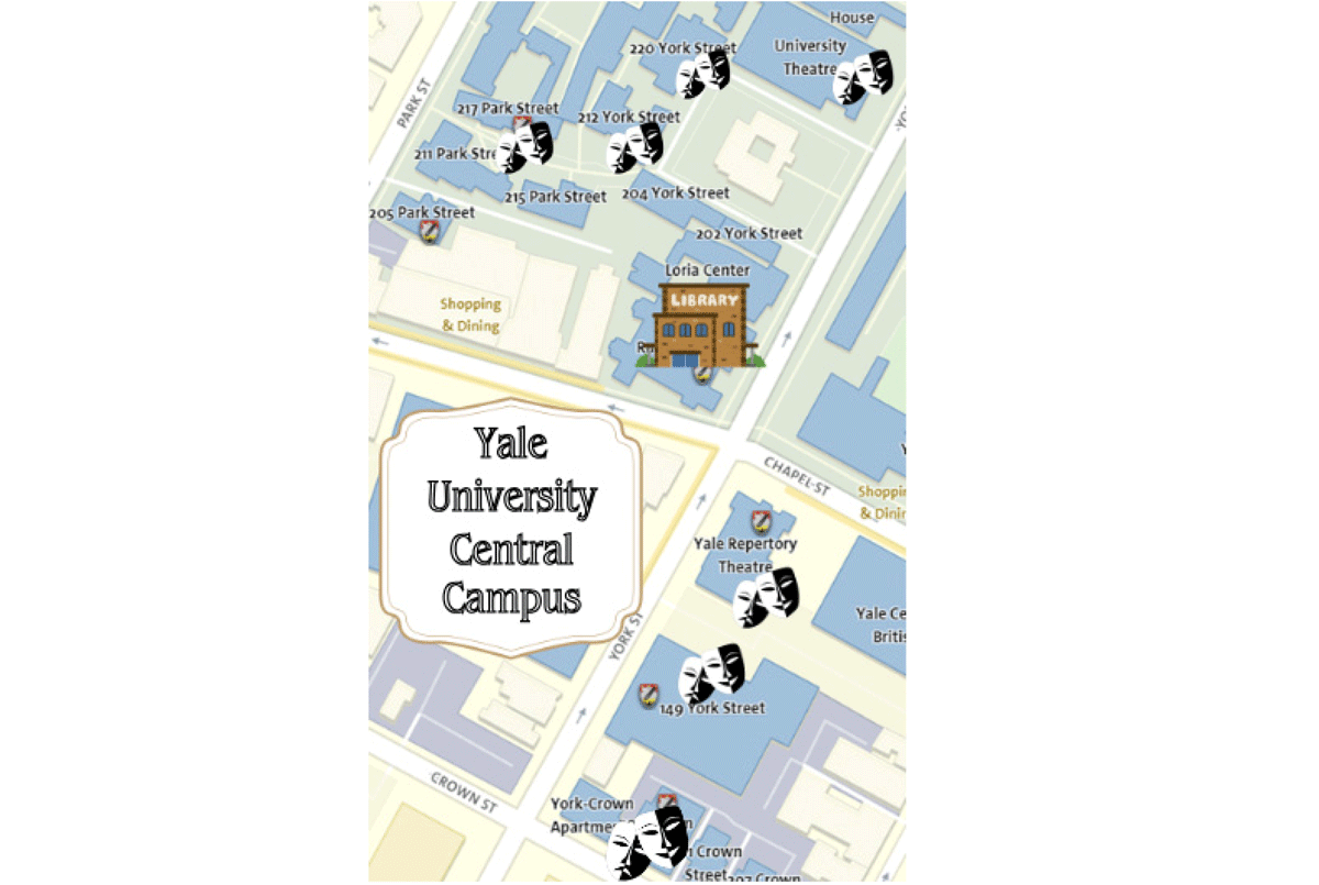 Before becoming a librarian, I earned my BFA in theatre, toured with professional theatre companies, and performed for over a decade, working with various artists, including designers, musicians, and choreographers. In 2023, I was hired as the Arts Librarian for Drama, Theatre, and Performance Studies at Yale University’s Robert B. Haas Family Arts Library, which serves the study of art, architecture, and drama. The library is centrally located within Yale’s arts campus, surrounded by classrooms, studios, and theatres. Figure 1 illustrates where the drama buildings and classrooms are in relation to the Arts Library.