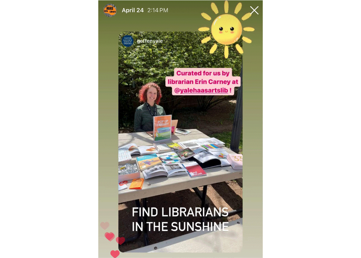 Ambassadors from the Yale University Art Gallery and the Yale Center for British Art attended symposiums and met the librarian, leading to proposed pop-ups at their own institutions in conjunction with the arts library.
