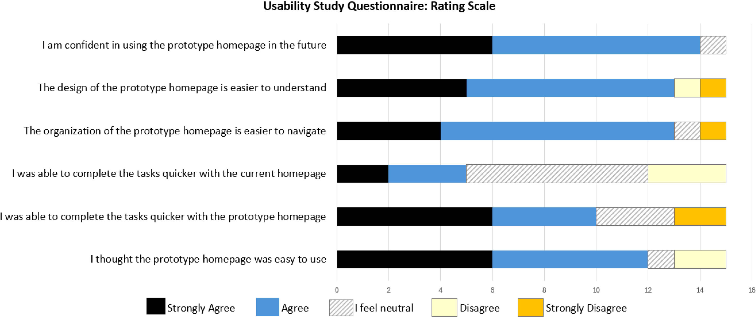 Based on the rating scale in the questionnaire, most participants found the prototype home page easier to navigate than the current home page and was overall preferred.