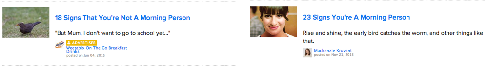 Buzzfeed creates a large amount of persona-driven content, which is often contradictory (as seen above); however, it gives the reader a more personalized experience with the website. Even if the reader doesn’t agree with every item on the list, the personas are often general enough to ensure at least some measure of success.