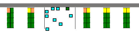 I created heat maps based on overall occupancy rate to get a quick visual of areas and furniture that were most and least popular with our students. This showed a few things very clearly. Although one area was extremely popular, certain kinds of furniture in that area were never used. Single carrels against the wall were very popular, but single carrels in the open were not. In blocks of carrels, the seats right beside the wall were occupied much more often than the other carrel seats in the same block (see fig. 6). Seeing the data in this way led to more questions: Can we fit more carrels beside existing wall space? What do students like so much about sitting next to a wall? Is there any way we can replicate that feeling in open spaces?