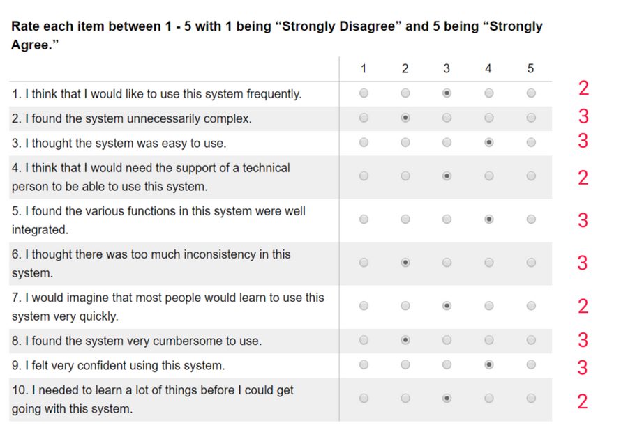 Bangor, A., Miller, J. & Kortum, P. (2009). Determining what individual SUS scores mean: Adding an adjective rating scale. Journal of Usability Studies, 4(3), 114–123. Retrieved from http://uxpajournal.org/determining-what-individual-sus-scores-mean-adding-an-adjective-rating-scale/http://uxpajournal.org/determining-what-individual-sus-scores-mean-adding-an-adjective-rating-scale/