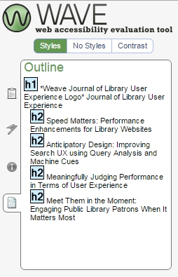 Accessibility is not simply a way to meet legislation or avoid litigation, but a fundamental aspect of a user’s experience of the organization’s digital space. Libraries should integrate accessibility concerns into the larger picture of user experience to benefit all users, not just those with assistive devices.