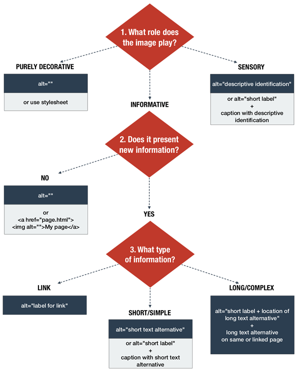 Alexander, D. (2010). Text alternatives—a decision tree. 4 Syllables. Retrieved from http://4syllables.com.au/articles/text-alternatives-decision-tree/ http://4syllables.com.au/articles/text-alternatives-decision-tree/