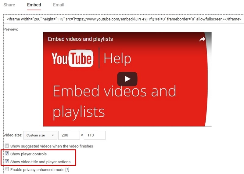 Most embeds also include a small set of options the designer of the page can set (see fig. 5). While often these can be left to the defaults, it is worth making sure that the embedded media: